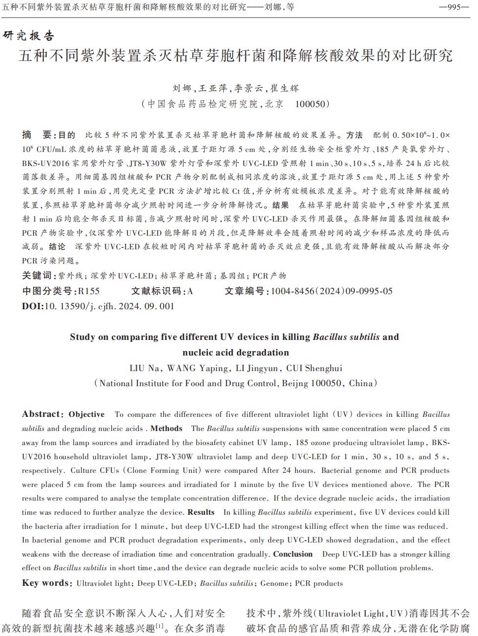 证实深紫外LED为唯一一种可以裂解核酸的紫外技术