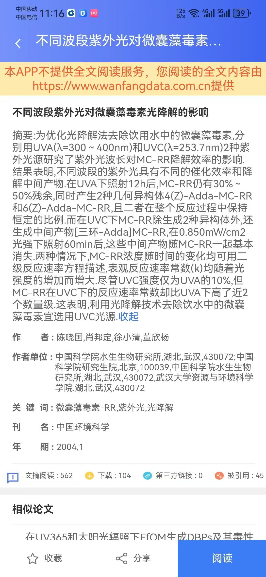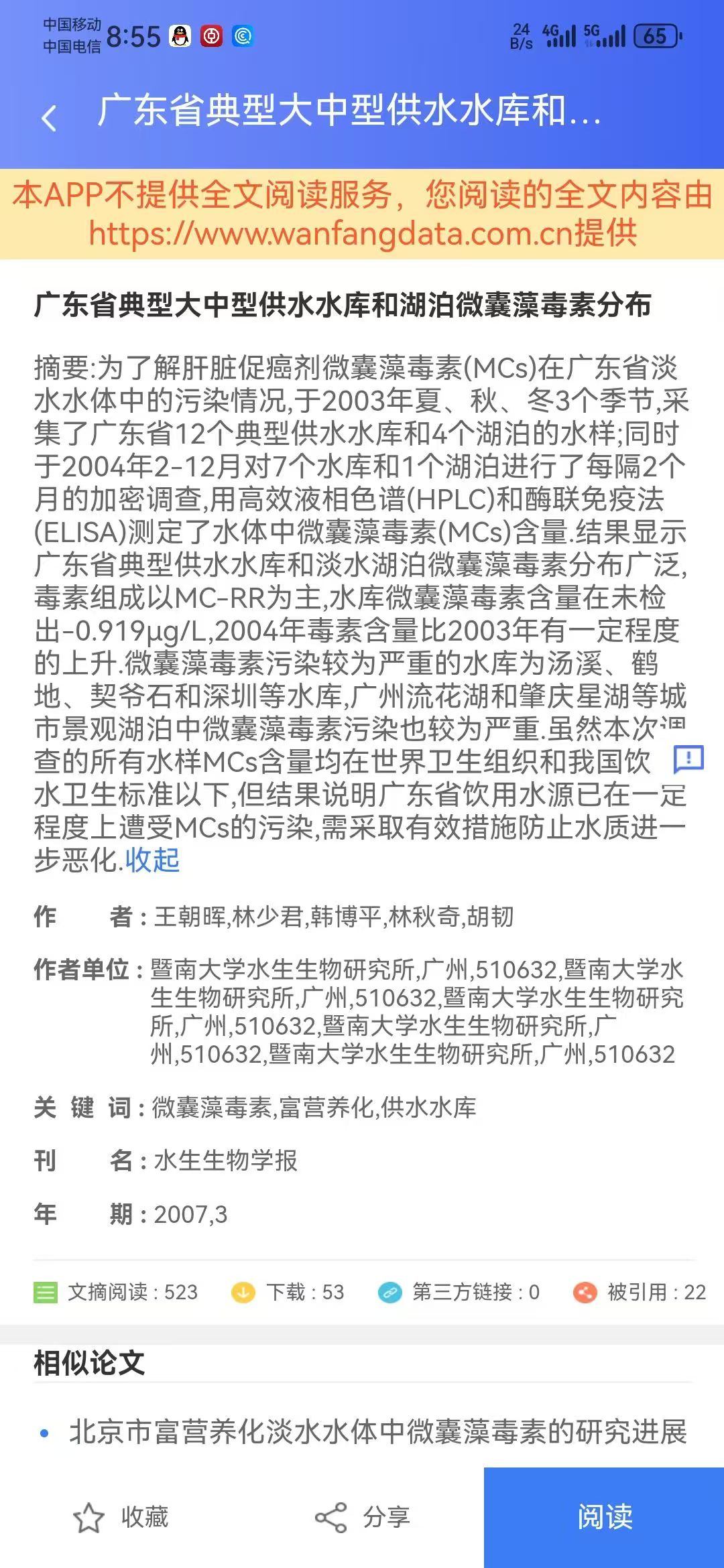 华南地区自来水中的微囊藻毒素污染,是肝癌等疾病重要的致病因素